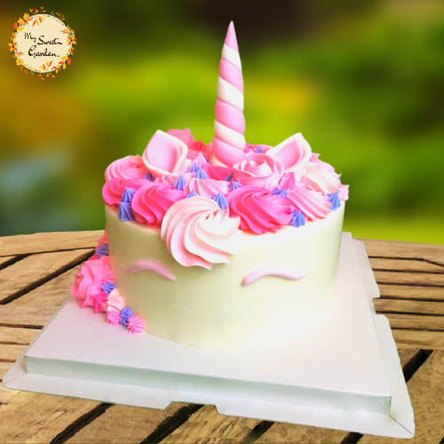 Melanie Unicorn Artistic Cake with Pink Drawn Eyes (Pink, Purple)