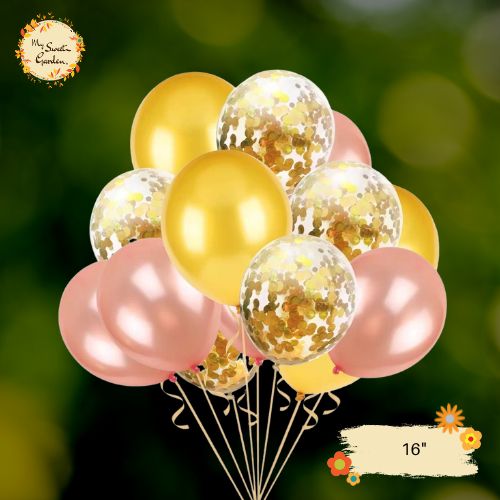 [TRIO] Beige, Gold, Confetti Gold Helium Latex Balloon